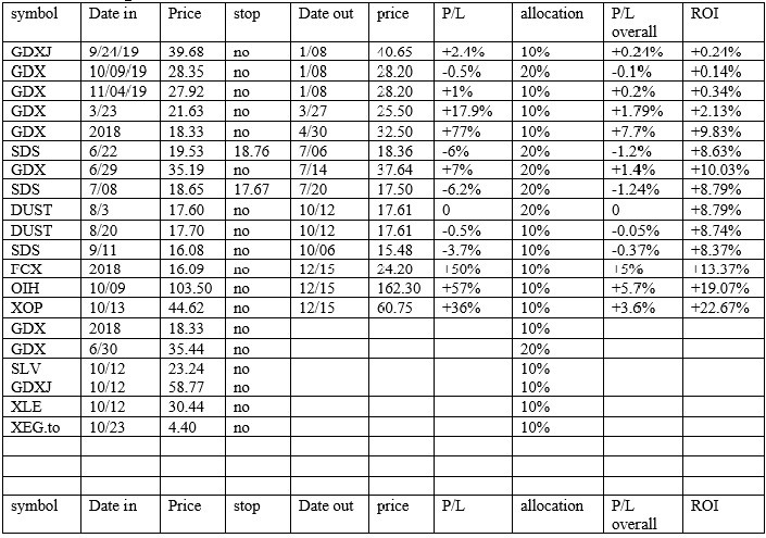 Our open positions at 70% invested are also firmly in the black to start the year, and our focus will continue to be mainly in the gold and energy sector, as I believe both sectors will offer above average return.