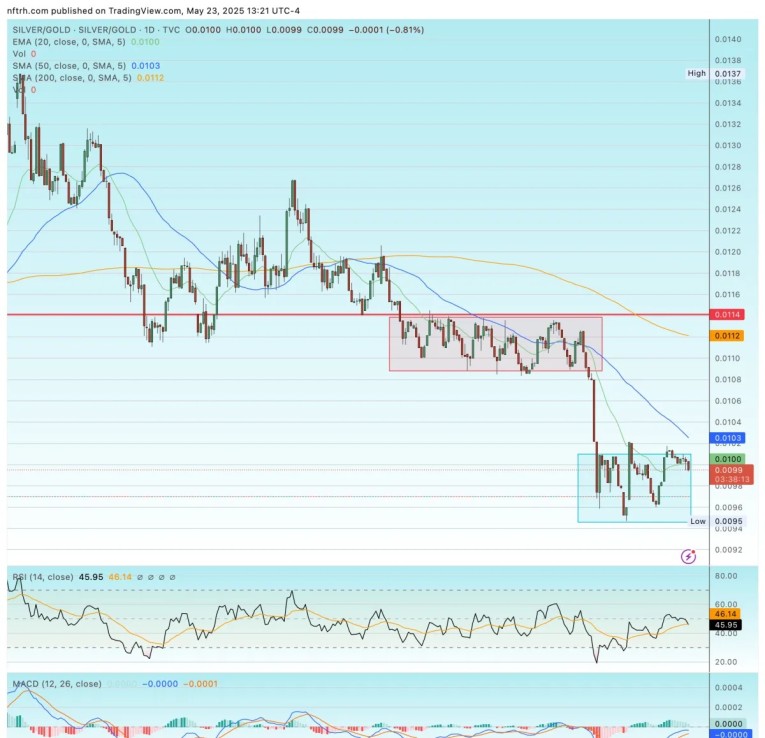 It was gold, then the gold miners and then finally, silver. After first identifying a condition for a big upside reversal in the Silver/Gold ratio in NFTRH weekly reports, here is the “Silver/Gold ratio” portion of one (now public) NFTRH+ subscriber update on the precious metals from May, 2025.