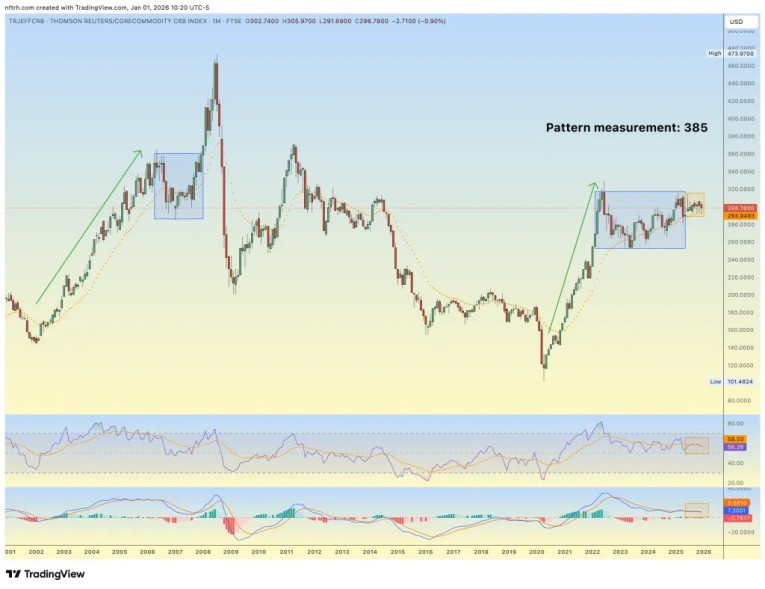 Assuming the situation shakes out to a bullish Silver/Gold ratio over the course of 2026, then big trades may no longer be mainly focused on the precious metals. They have, after all, taken a moonshot in 2025. This while the broad commodity index (CRB) has pretty much gone nowhere.