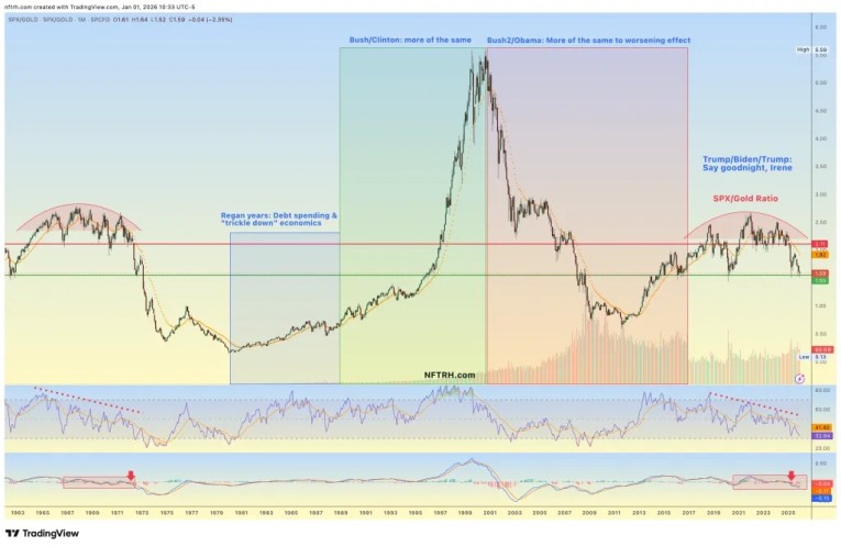 Stock markets were not within the scope of this article. But as we proceed into 2026, I would be careful about a perma-bear orientation. Stocks could go sideways or even rally, after all, in this new macro (in some ways similar to the 1970s macro). But they may continue to tank in “real”, gold adjusted terms.