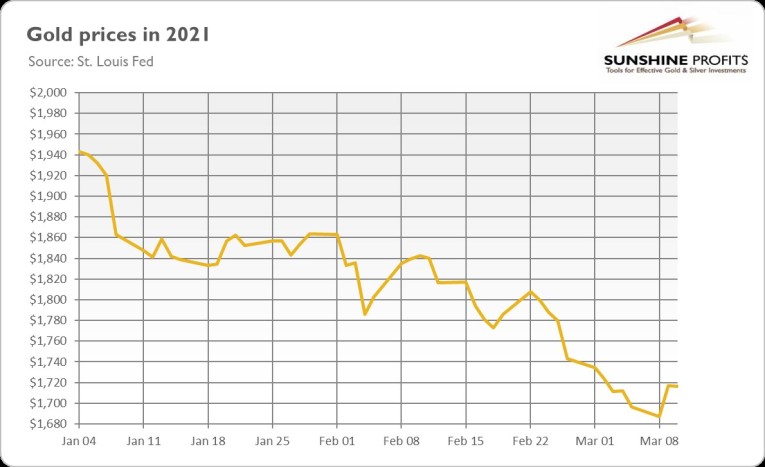 Second, higher inflation does not have to help gold right away. What I mean is that as long we have an economic recovery and decent economic growth, Mr. Market may simply focus on growth and shrug off higher inflation. However, I bet that the current period of economic recovery will be followed by a period of stagflation, i.e., a period of stagnation and inflation. In such an environment gold will shine. This will not happen tomorrow, but it will happen eventually.