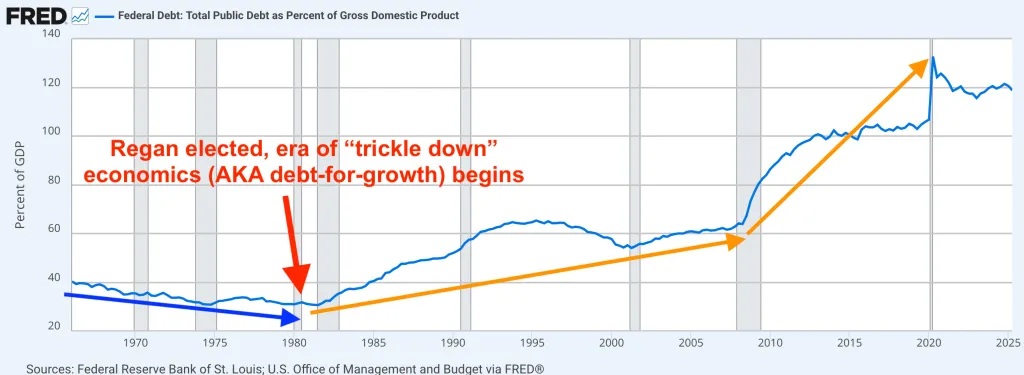 Though much of the developed world is in a similar boat, I am a US citizen and so I focus on the US. A late great power that is driving itself berserk after a decades-long ‘debt for growth’ orgy.