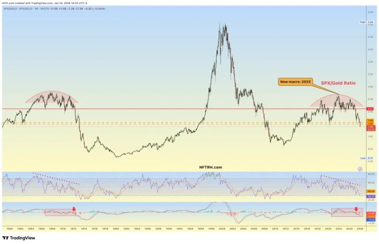 Indeed, if a rebound in stocks vs. gold doesn’t happen soon (again, it’s FOMC week), the SPX/Gold ratio will make its first monthly close below a key level. Either way, interim relative stock rally or continued decline, the era of stock market preeminence has been over since 2022 and into the foreseeable future.