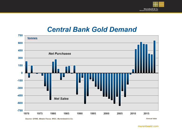 The truth is Central Banks don’t have any inside information and their buying or selling cannot be used for market timing purposes. The chart below shows that the 2001-2011 run began with record central bank selling. Central Banks have been consistent buyers since the 2011 peak. If anything at all, the information is a contrary indicator.