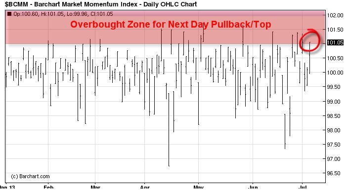 This chart I look at daily. In short if its price is at 101 or higher I expect the broad market to pause or pullback within the next day. It tells me if stocks have moved to far in one direction on a daily basis and if so sellers (big money players) are likely to re-align stocks by taking profits or shorting during these times.
