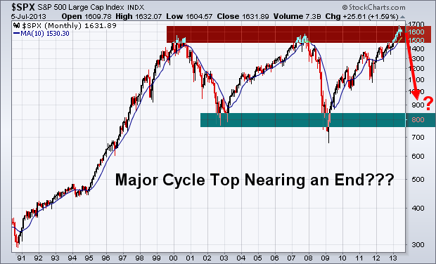 This chart is just to show you what is possible. I am not a perma-bear nor do I want another bear market like this to happen. But knowing what is possible still has to be known. Major market tops are a lengthy process and tends to take several months. If this is the case then it could be a wild and choppy market for the rest of 2013. Do not expect price to just collapse and free fall for 18 months… Dreams like that do not happen. Bear markets must be actively traded as they carry a lot of risk.