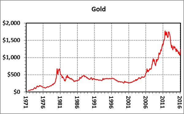 Gold ended 2015 at $1062/oz, and then had the predictable January rally with an $1112 close. It continued to rally thru mid-March and since has since consolidated in the low to mid-$1200 range. This three-month run-up has reversed the aforementioned 4.5-year trend and suggests the bear market for gold is over.