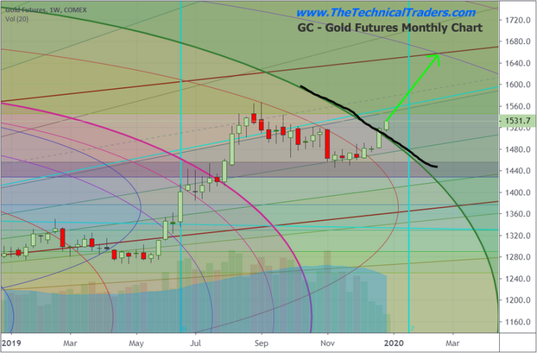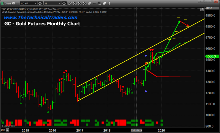 The Gold rally we predicted to happen in late 2018 took place, almost perfectly, based on our ADL predictive modeling systems results. This rally took place in May through September 2019 and pushed Gold up to levels near $1600. The rest of the year, Gold consolidated near $1500 as a strong US Stock Market rally took hold in Q4 of 2019. Our original prediction was that Gold would rally to levels near $1750 before the end of 2019 based on our Adaptive Dynamic Learning predictive modeling system (ADL). This did not happen in 2019 as out ADL modeling systems suggested, but it appears Gold is setting up for another massive upside rally in 2020.