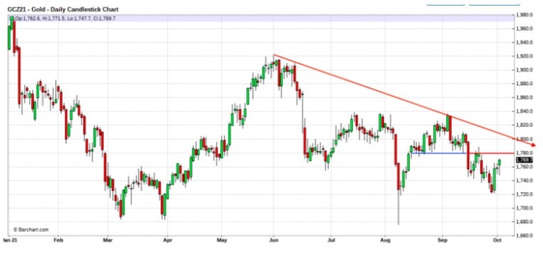 In response to this week's jobs data, COMEX gold would first need to get back above $1780. From there, a move above $1800 would be necessary for anyone wanting to get interested in a renewed move up.