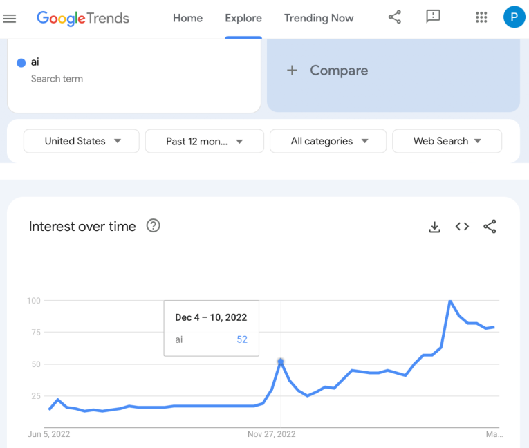 We even have data to support it. Here’s how frequently “AI” has been searched with Google: