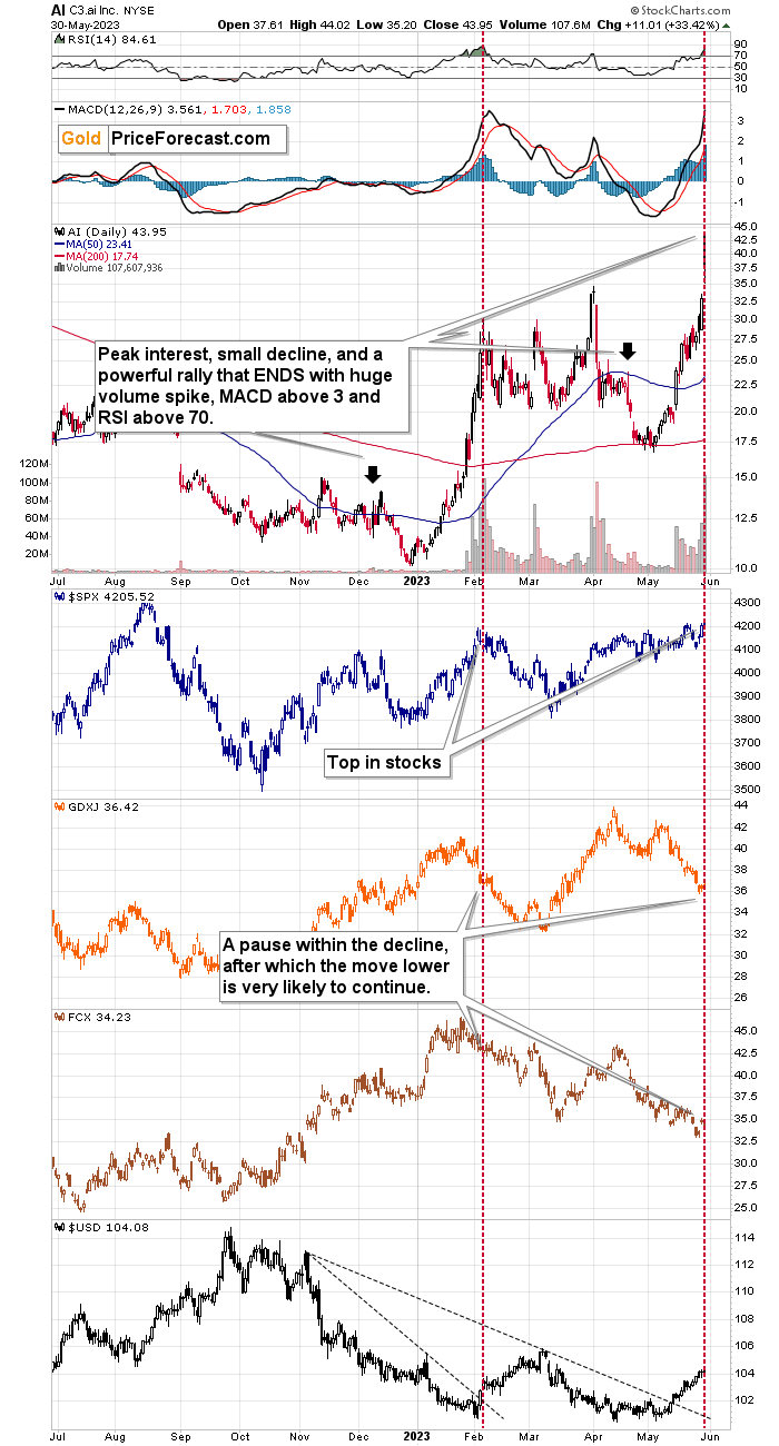 The aftermath was bearish in cases of all: AI, S&P 500, GDXJ, and FCX. It was particularly bearish for silver prices, too.