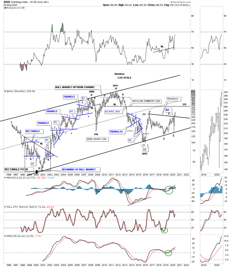 Below is the history chart for the HUI showing the consolidation patterns that were made during the 2000 to 2011 bull market.