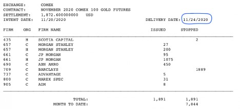 But I suspect that YOU haven't forgotten why you own gold and silver. I know I haven't. And in the end—before Covid and QE∞ and all the election madness—our target for 2020 was precisely where price sits right now as I type $1800. And while we have met and even exceeded our price targets this year already, the overall situation for The Banks has certainly deteriorated, thus the need for this massive liquidation flush just before December deliveries begin.