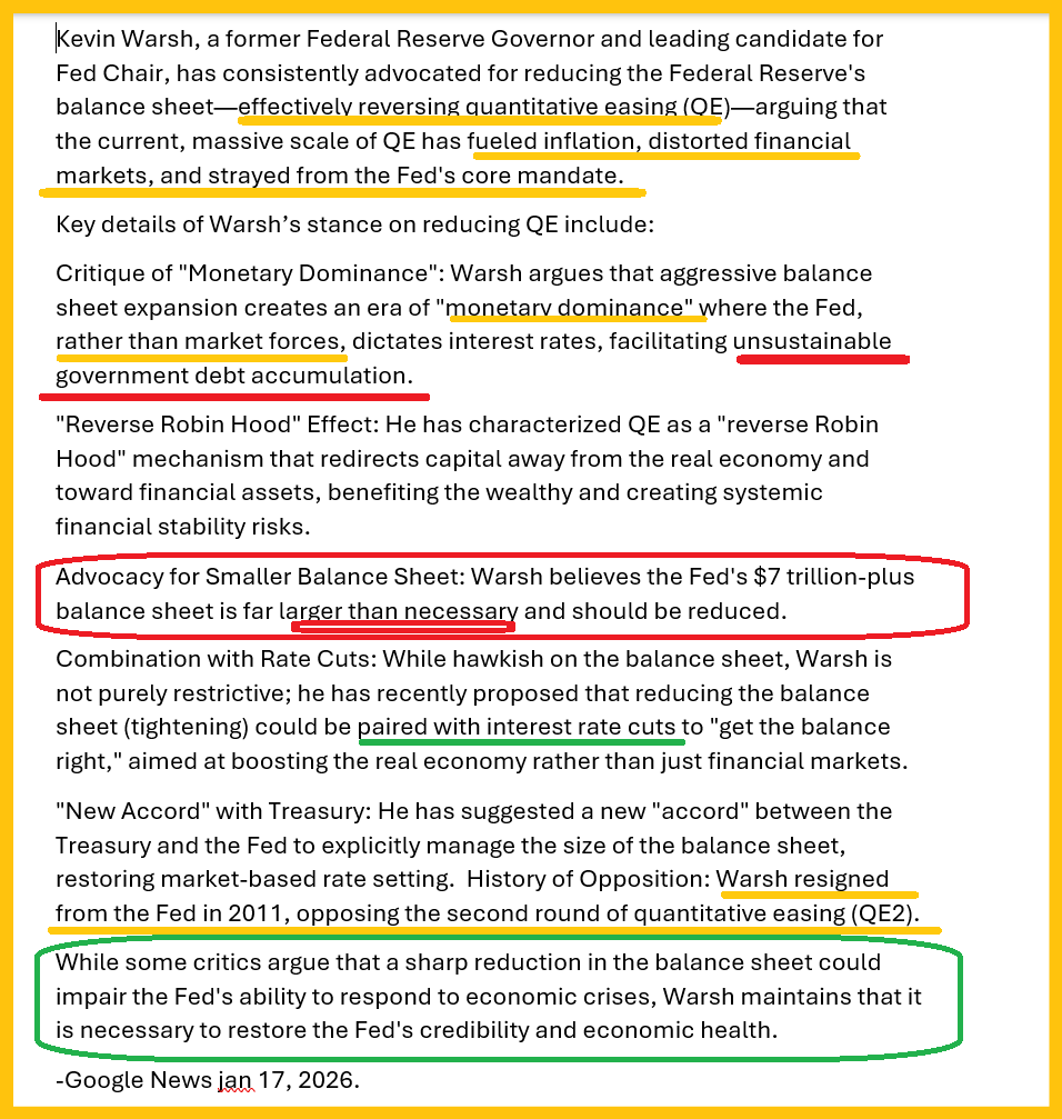 The new Fed chair hasn’t been picked, but frontrunner Kevin favours QT (to infinity?) and views the stock markets as outrageously overvalued. He’ll need massive QT to restore any semblance of confidence in the US government, its bonds, and its fiat.