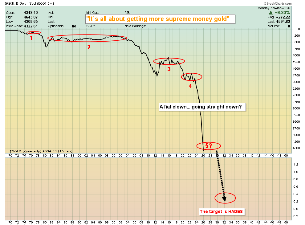 The fundamentals in favour of gold are “through the roof”. US “Gmen” claim that attacking NATO allies in Greenland is an option that is on the table. The blowback from that statement alone, let alone an actual war, could potentially drive gold another $2000/oz higher against fiat. If there’s an actual war, that $2000 surge could occur… in a single day.