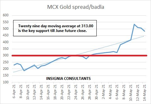 - MCX gold spread/badla on closing price of 14th May was at Rs.482.