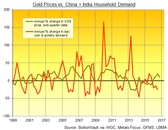 Can Western gold investing rely on China + India to put a floor under 2017 prices...?