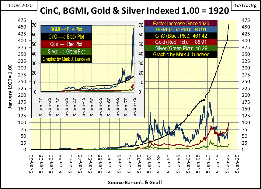 But look at the expansion of CinC since January 2010, its really took off. What’s happening here? Go back and reread my William Durant quote above! This is going to end badly, and as it does at some unknown point in the future; count on gold, silver and the BGMI soaring upward to match the soaring CinC plot.
