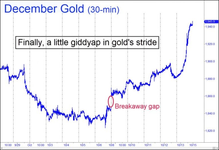 Recall that after the war erupted on Saturday, October 7, with an assault on Israel by Hamas, the markets seemed relatively subdued when trading resumed Sunday night. We can attribute this seemingly absurd behavior to the deft touch of the dirtballs who manipulate stocks, bonds and commodity prices for a living. They are very smart guys, especially in dire circumstances. And even if they weren’t able to keep a lid on bullion prices for long, they didn’t panic into Treasurys, at least not yet, and they gave stocks the temporary appearance of buoyancy. Accomplishing this last trick was easy for reasons I’ve explained here many times: Squeeze shorts in just one stock — AAPL — and you can scare off a pitchfork mob of sellers who might otherwise incline toward burying the broad averages. In this way, the dirtballs were able to distribute stocks for just a little longer. But they will not be able to surf the avalanche that is coming this week. If index futures open quietly on Sunday night, don’t be fooled. In the investment world, as the old saying goes, he who panics first, panics best.