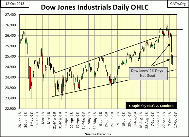 Do you want to see something really ugly? Look no farther than the daily bar chart for the Dow Jones below.