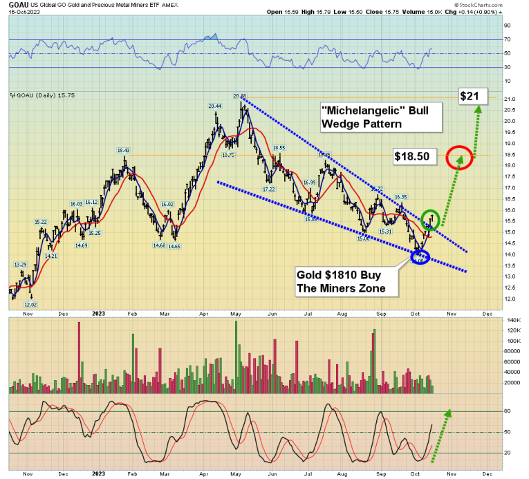 Gold stock enthusiasts should make note of the $18.50 and $21 target zones… and expect to see GOAU reach both price levels soon.