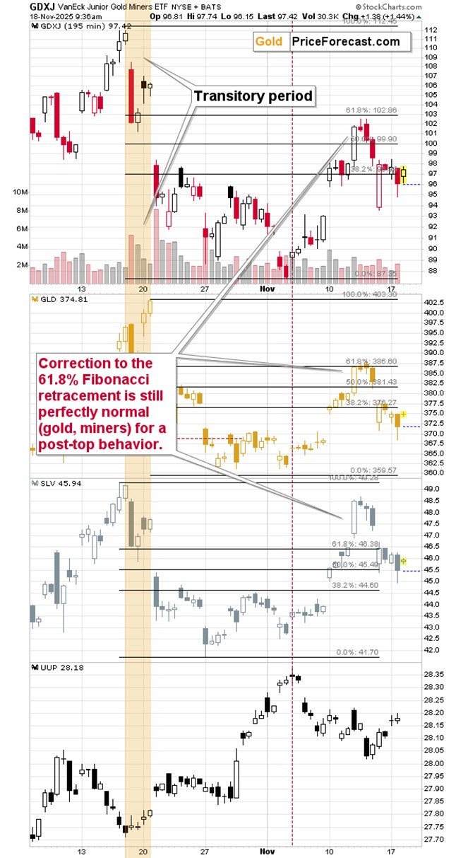 This, in turn, means that the breakout above 100 in the USDX would be likely to result in severe declines in gold, silver, and mining stocks.