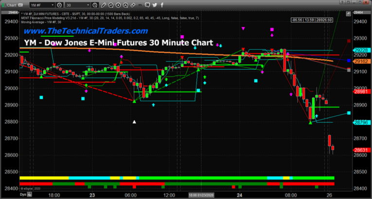 This 30-minute YM futures chart highlights the reactionary downside price move (GAP) taking place on the open of the Asian markets. This GAP lower may be just the beginning of a much broader downside price move. We are going to have to wait and see what happens related to the Wuhan virus over the next 14+ days.