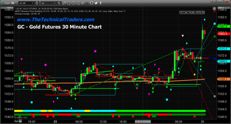 As the Asian markets opened on late Sunday, traders expected a reactionary price move related to the threat of the Wuhan virus and the continued news of its spread. The US Dow Jones futures markets opened close to -225 points lower on Sunday afternoon and were nearly -300 points lower within the first 25 minutes of trading. Gold opened $10 higher and continued to rally to a level above $15 higher.
