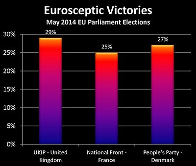 In one of the most stunning political developments in recent decades, the group of political parties that are being collectively called "Euroskeptics" won more votes than any other individual party in several major European nations in the May elections for the EU Parliament.