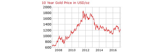 Today, after a five-year downtrend, gold has begun moving higher since 2016.