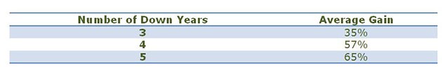 Going back to the 1920s, here's the data Wealth Research Group found on fortunes earned for investors on down year trends: