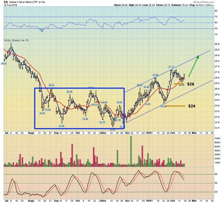 I recommend that all investors carry some silver and associated miners in their portfolios and the $26 stop-loss level for SIL-NYSE allows investors to board this precious metals “freight train” with minimal risk and maximum potential reward!