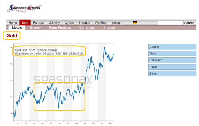 This is the seasonal spot gold chart, courtesy of Dimitri Speck.