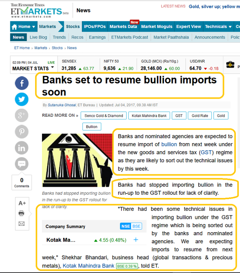 They decided to halt imports until they got clarification about applying the new GST regime to the gold market. It appears that June imports were only about five tons.