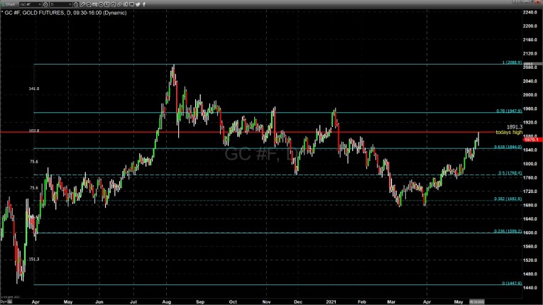 The minutes rippled through the financial markets and created a roller coaster ride for gold traders and investors. Gold futures basis the most active June 2021 Comex contract traded to a high of $1891.30 and a low of $1852.20. The last time gold traded to a high above $1880 was January 8, 2021. As of 5 PM, EST gold futures are currently up by $2.10 and fixed at $1870.10.