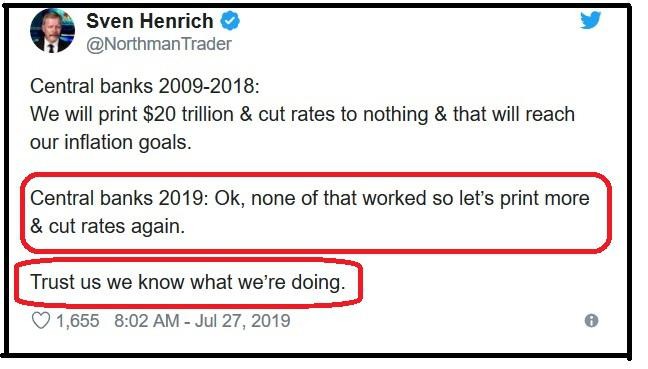 Insanity or desperation… or front running the bond market assuming rates will move more negative in bankers’ desperate quest for stimulus. This sounds like desperation, fear, and misguided hope driving bizarre decisions in a flawed system. Some would claim our governments and central banks know what they are doing. Others disagree.