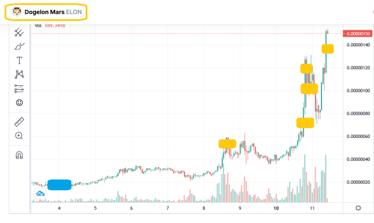 Just the rumour of the “electric car superstar” being involved in a junior crypto is enough to create a tidal wave of buying pressure. Here’s the bottom line: