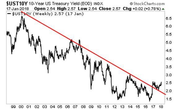 The yield on the US 10-Year Treasury has broken its 20-year downtrend.