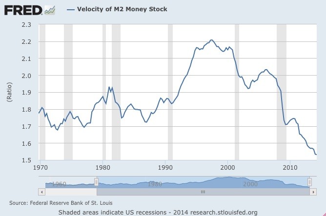 This is a huge announcement because it would lead to a major increase in the velocity of money. While a tremendous amount of money was created following the financing crisis, it has yet to result in significant inflation as a good amount of it remains parked in excess reserves and in corporate accounts. This has brought the velocity of money to the lowest levels in decades.