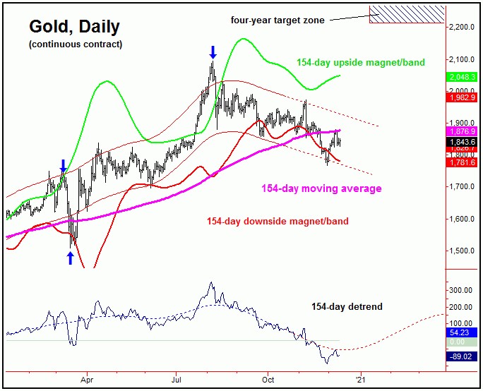 As mentioned last weekend, gold 2200 (or higher) may come sooner than most people think it can! For the longer-term view, the larger cycles are pushing higher into the late-2021 to early-2022 region. With that we see the bigger bull market as being intact, though we expect the next major peak to also occur into that same timeframe, before giving way to a larger-degree decline (with the four-year cycle) into late-2022 to Spring of 2023. Stay tuned.