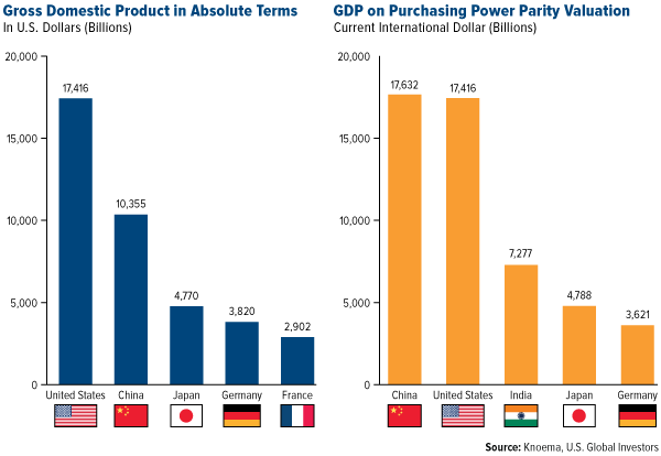 For every seven people on Earth, more than two and a half are either Chinese or Indian. Last year, China overtook its southwestern neighbor as the world’s largest purchaser of gold, and this year, China’s economy surpassed the U.S.’s on a relative basis, while India’s is gaining fast.