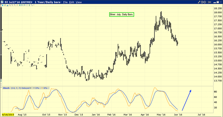 I expect gold will trade essentially sideways until mid-July, which is when it often bottoms anyways. That’s because early preparations for gold-oriented Diwali begin in India, when gold demand begins to surge.