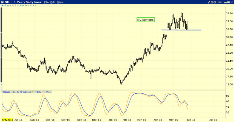 In the same time frame, the SIL silver stocks ETF surged well over 100% higher. What is even more important is that while silver bullion has now fallen about 25% from the $18 area high, the SIL silver stocks ETF is only down about 15%!