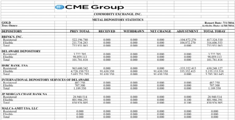 So, just how much have things changed in the past twelve months? See for yourself below. First of all, here's a typical, pre-March 2020 CME "Gold Stocks" report. This one is from late June of 2016. Note the limited categories of "gold" and eight depositories for the COMEX: