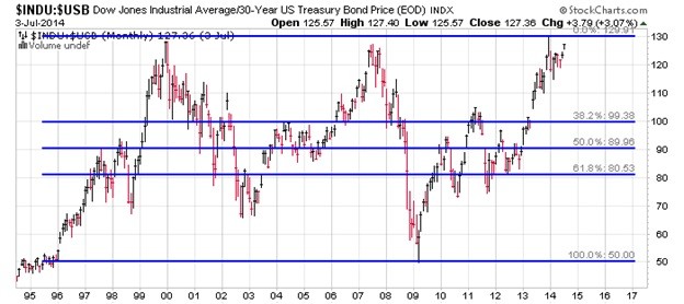 1- Dow Index/US T-Bond Ratio has formed a bearish Triple Top. Notice that the ratio peaked in 2000 and again at the same level in 2007, which sparked the crash in US stocks. Well again recently the Dow Index/US T-Bond Ratio has peaked. Consequently, history is testament a stocks’ crash is highly probable.