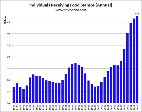 Ironically, while the super-rich become filthy rich via wild irrational speculation in stocks, the legion of poor Americans spread like some lethal viral plague. Today, there are 47 MIILION impoverished Americans subsisting on FOOD STAMPS.