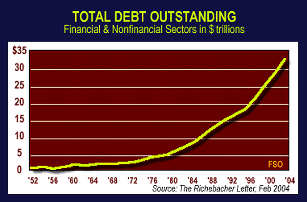 The one fact pertaining to all conditions is that they will change. Once a bull market dies and a bear market takes over - then one way or another, by hook or by crook, despite the manipulations of Washington and the power elite in NewYork - the bear market will go to its conclusion. The conclusion will find investors enveloped in black pessimism while stocks are selling at great values. At the bottom of the bear market, the so called "experts" will tell us that capitalism as we know it is finished, that stocks will never rise again, and that there is no future in investing." As usual, the so called "experts" will be wrong. So the big question is "Where are we now?" Again I defer to Mr. Russell who says it so much better than I can. "How does this information pertain to the present situation? Let's recount a bit of history. We rode through a great bull market that began in 1974 and ended in1999-2000. The first bear wave of this new bear market carried from 2000 to 2002. Following the end of the first bear wave, the market turned up and a corrective advance took the market to highs in January-February of 2004. Now the upward correction is breaking up - and the top is in. The bear market has now lasted a little over four years, but the Dow is still over 10000 and the S&P is trading just below a 50% retracement of its 2000 to 2002 bear market losses. The Nasdaq recovered about 25% of its bear market losses and is now turning down again. Values in a primary bear market deteriorate through time, and as I said - the bear market is now a bit over four years old. Underlying values have deteriorated, but prices have not declined that much. For this reason the bear may want to make up for lost time. If this occurs and the top is in, then the year 2004 could turn out to be a rather nasty affair. Based on my studies, we're now early in a long journey that will ultimately take the general stock market down to extreme undervaluation. This is the change that 98% of the population is not ready for - this is the change that 98% of the population can't even conceive of."