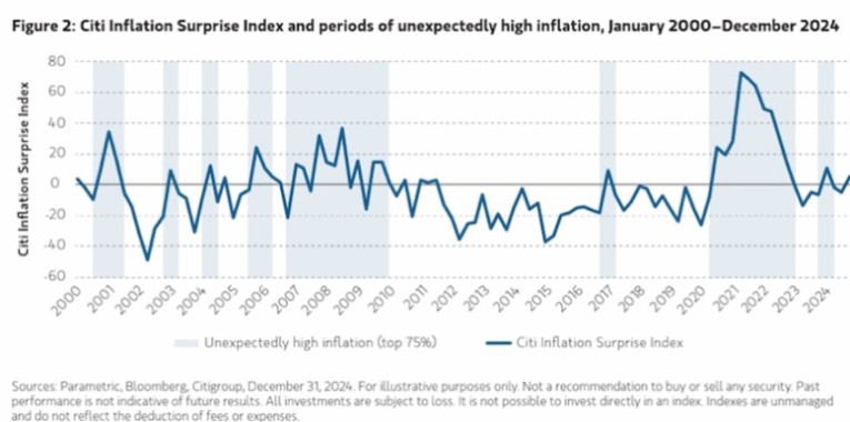 According to Morgan Stanley, when inflation is higher than expected, history shows that commodities often outperform both equity and fixed income investments.