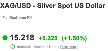 And now here's something interesting to chew on: There's a spot price for silver, too. You can find it under the symbol XAG/USD: