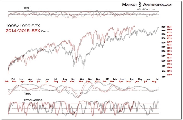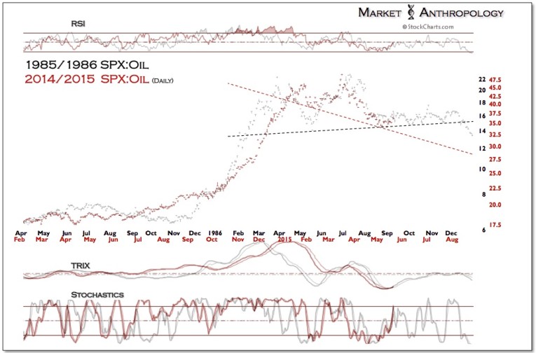 We included comparative updates for these periods that were normalized based on the respective exhaustion pivots of the SPX:Oil ratio.